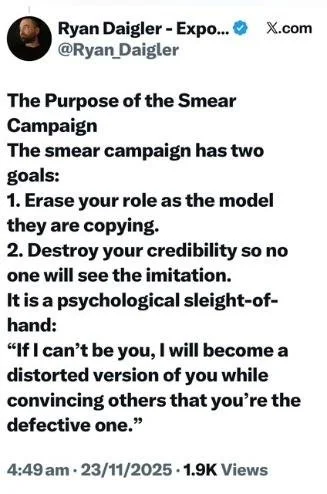 This post below (posted 4th Nov 25) is a fourth example of Daigler reversely attributing his own behaviours to Dr Mitchell.